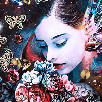 東京都出身の画家。 アクリル絵の具を使用し、手描きによる精密な写実画を特徴とした作品を制作。大学は心理学を専攻したが、人生の軸を絵画制作に転向しフリーランスとして活動する。2010年、ニューヨークでの個展を皮切りに画家として本格的に独自の世界を展開する。全国各地での個展開催に併せ、壁画制作、舞台美術、TVドラマ美術提供、ブランドや企業との商品コラボレーション、音楽アーティストへの作品提供など作家活動を多岐に浸透させる。 2015年より海外での作品展開を始め、2018年現在まで半分をロンドン、半分を東京で過ごす。2017年は1月にマンハッタン、4月にロサンゼルス、11月にロンドン、12月にアムステルダムで個展や企画展に出展。海外への作品発信を経たことにより「和洋折衷」をより意識したテーマに作風を昇華させる。2018年、浅草文化再掲を理念とした社団法人Asakusa Growth Hackersを設立。舞台『春夢共鏡』の総合プロデュースを行い、画家として舞台美術を担うだけでなく「キャンバスを超えた描写」としてダンサー、作曲家、映像作家、カメラマン、ファッションデザイナーを含めた美術集団を独自の世界観を主軸にまとめている。